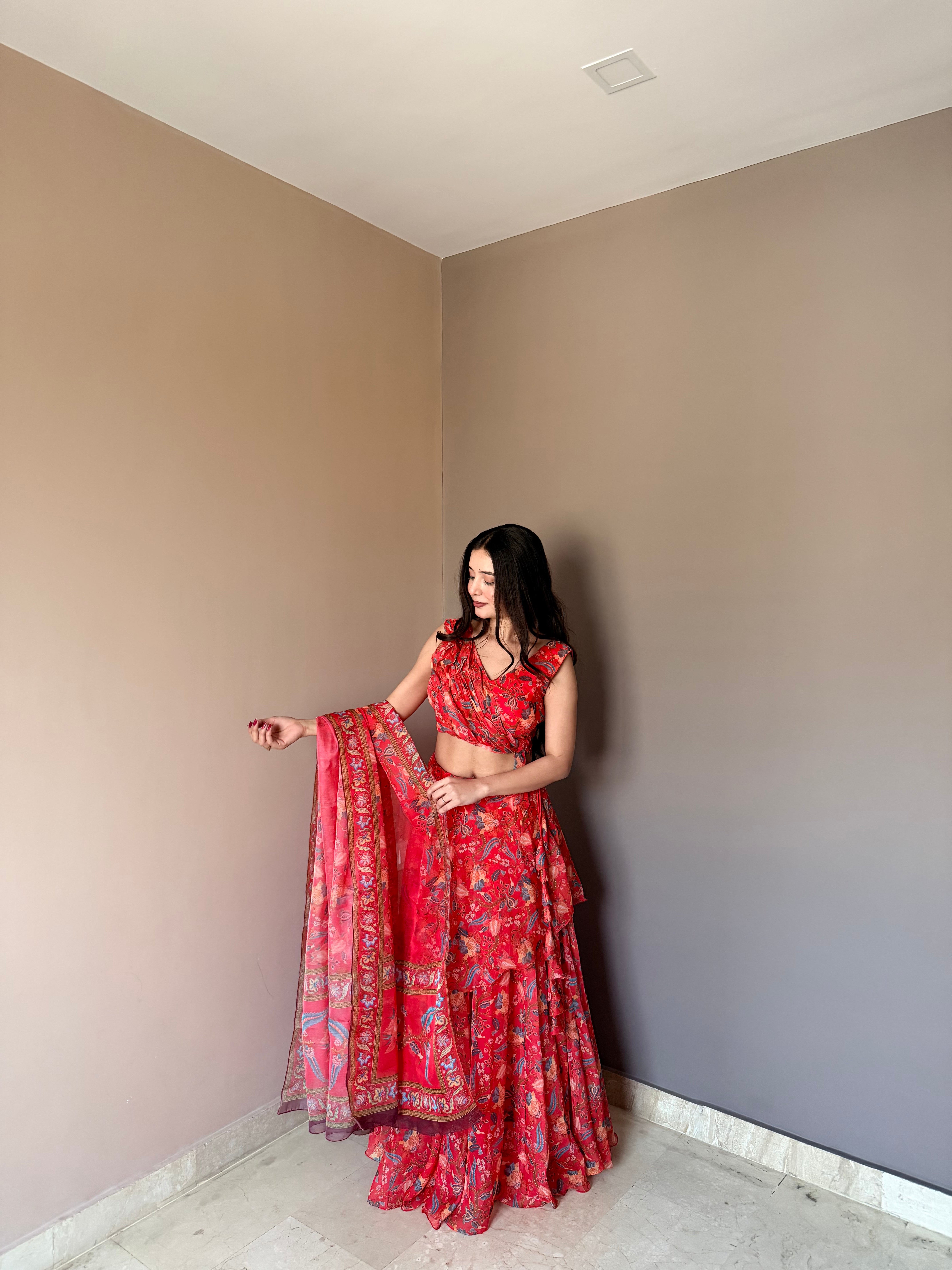 Exclusive Designer Floral Lehenga with Contemporary Drape