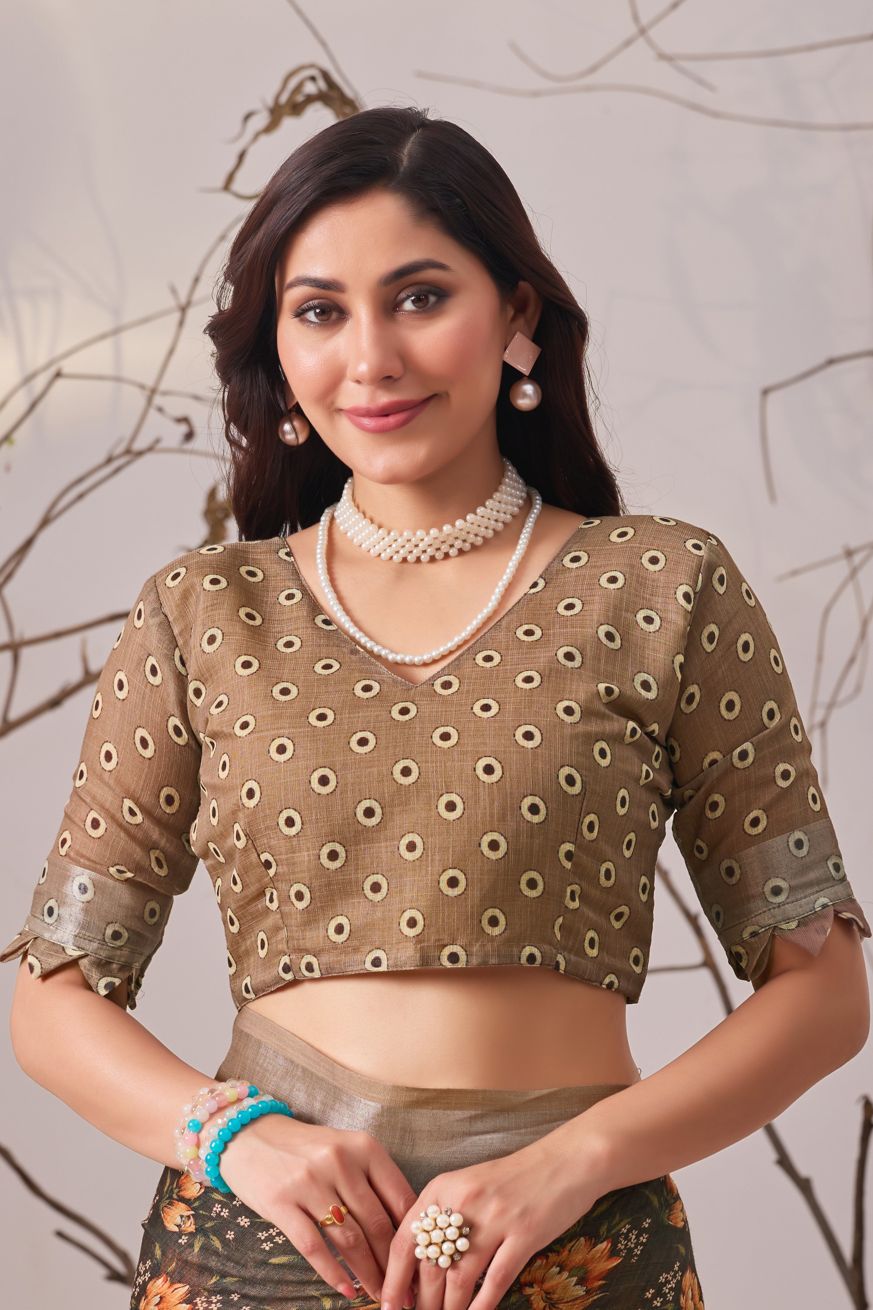 FABRIC: Linen Cotton Saree with Beautiful floral pattern Digital Printed Design (5.5 meters)