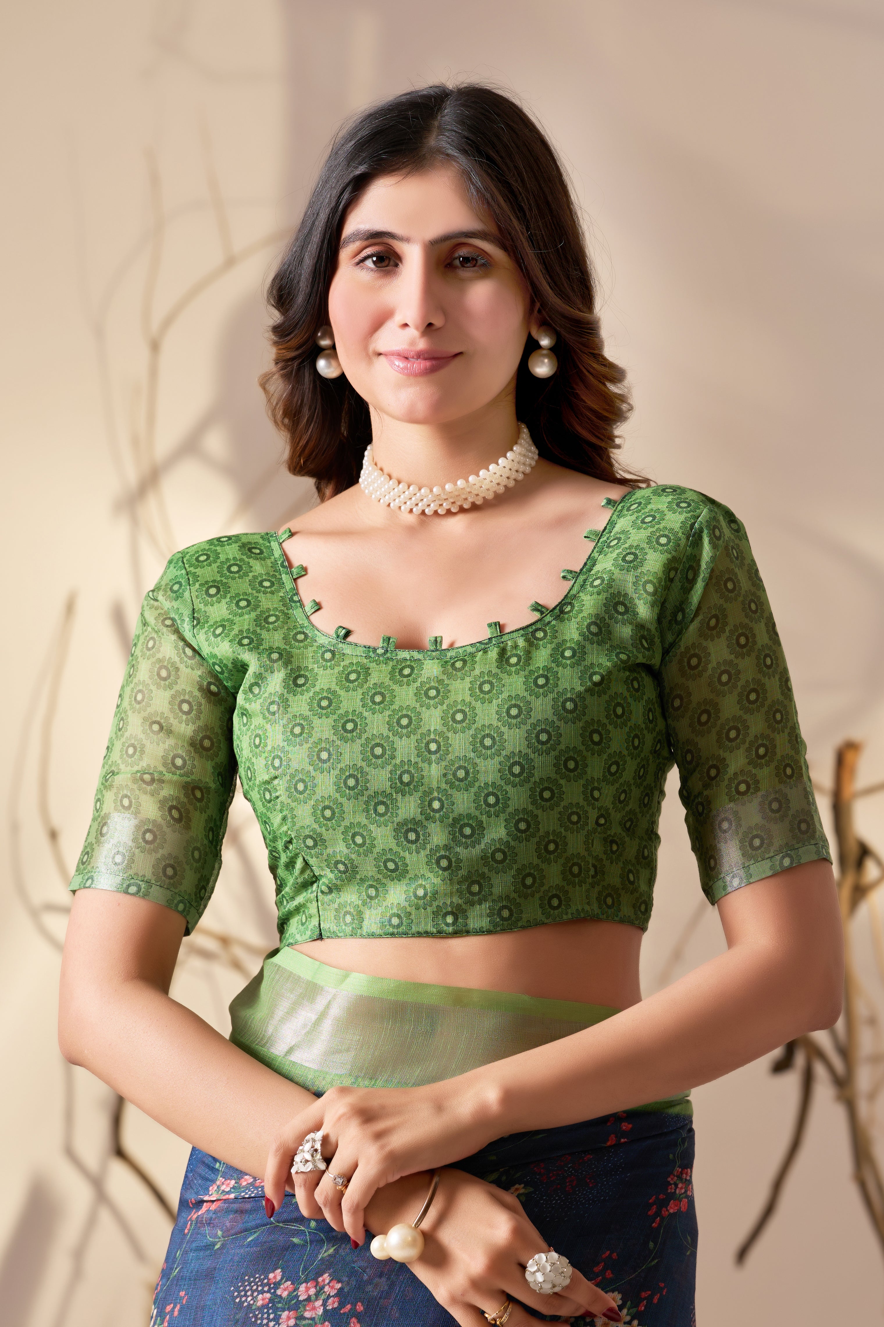 BLOUSE: Matching Contrast Green Printed Blouse (0.80 Mtr)