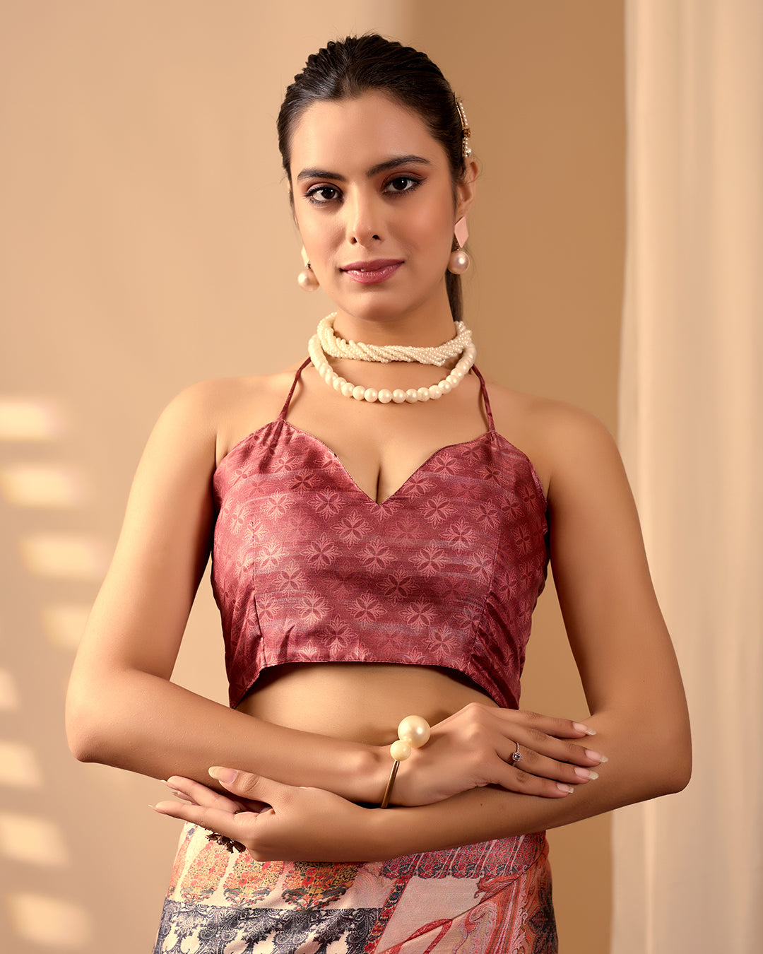 BLOUSE: Matching Contrast Designer Blouse in Peach Tone (0.80 Mtr)